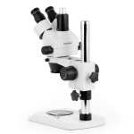 This is a trinocular stereo zoom microscope with a compact stand with 12" pillar. The stand's base has an extended, beveled front edge for comfortable hand placement. The microscope incorporates all the most excellent features of a high quality laboratory instrument. Designed to meet the demands of modern microscopy applications, this microscope exceeds all expectations. It comes with SUPER widefield optics and basic table stand. This microscope offers high resolution and good depth within a broad field of view. It provides crystal clear sharp stereo images with a 4" (100mm) native working distance. Its 45 degree inclined ocular tubes ensure an easy observation and rubber eyeguards provide further comfort. Its trinocular port enables you to add photo or video capability.