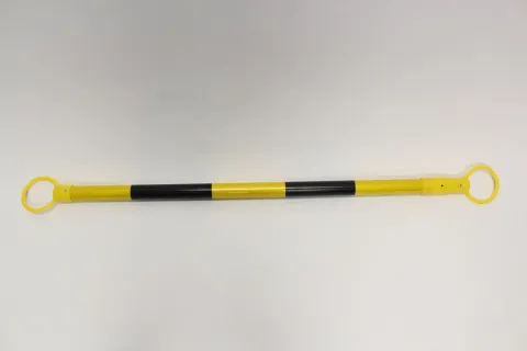Barrier Cone Bar is 1 1/2” dia. molded plastic with plastic rings of 3 1/4" dia. opening on both ends to fit over the top of traffic cones. Telescopic bar opens to a maximum of 6 1/2-ft and collapses to 4-ft for lightweight portability and storage.