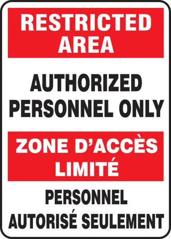 - Use bilingual signs to notify personnel of restricted areas in two languages.