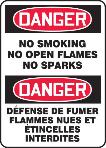 Accuform FBMSMK005XT French Bilingual OSHA Danger Smoking Control Sign: No Smoking - No Open Flames - No Sparks