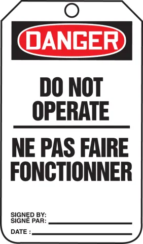 Accuform FBTAM101CTP Bilingual French OSHA Danger Safety Tag: Do Not Operate