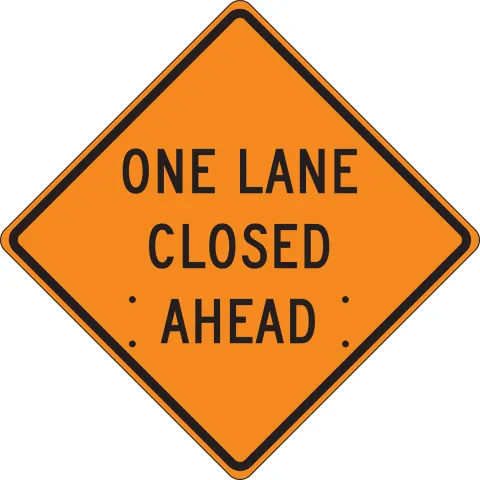 - The One Lane Closed Ahead sign shall be used in advance of that point where one through lane of a multi-lane roadway are closed
