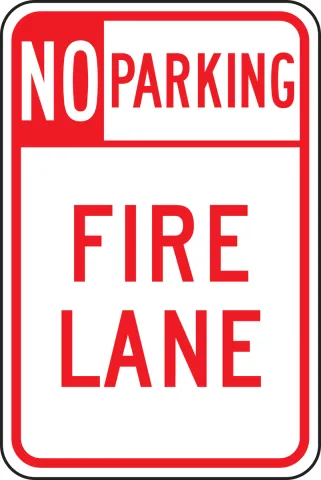 - Keep fire lanes clear of parked cars with this no parking sign.