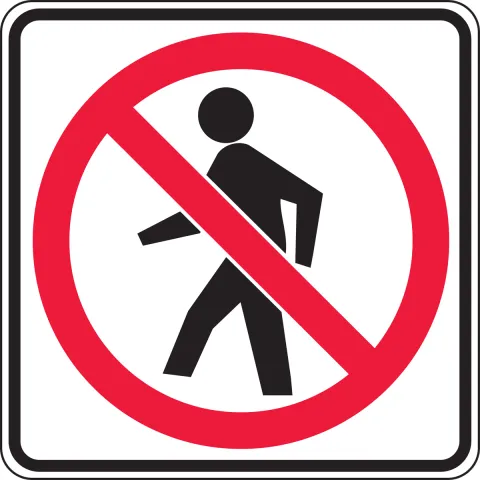 - The No Pedestrian Crossing (R9-3) sign may be used to prohibit pedestrians from crossing a roadway at an undesirable location or public building where a crossing is not designated