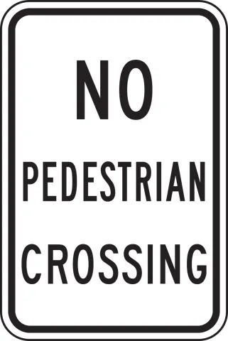 - The NO PEDESTRIAN CROSSING (R9-3a) sign may be used to prohibit pedestrians from crossing a roadway at an undesirable location or in front of a school or other public building