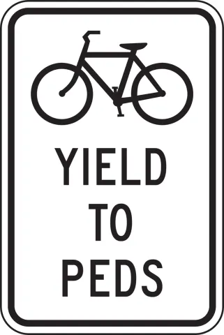 • The R9-6 sign may be used where a bicyclist is required to cross or share a facility used by pedestrians and is required to yield to the pedestrians