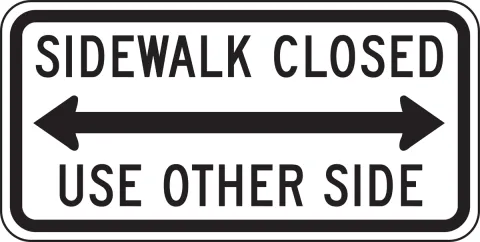 Inform pedestrians of a closed sidewalk and instruct them to use the other side.