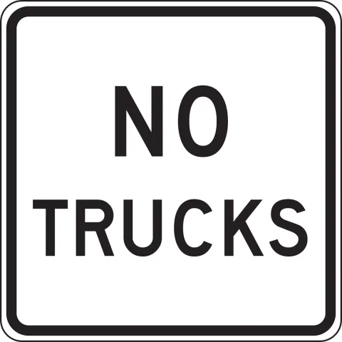• The NO TRUCKS (R5-2a) word message sign may be used as an alternate to the No Trucks (R5-2) symbol sign
