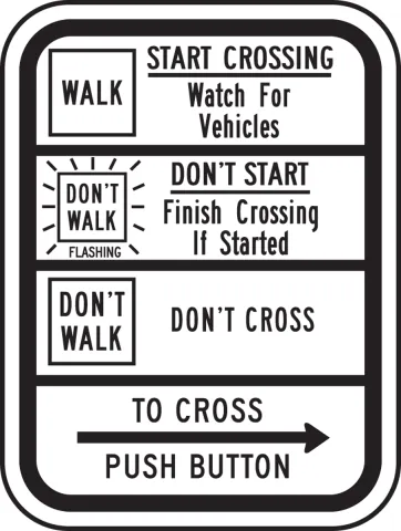- Where symbol-type pedestrian signal indications are used, an educational sign (R10-3c) may be used instead of the R10-3 sign to improve pedestrian understanding of pedestrian indications at signalized