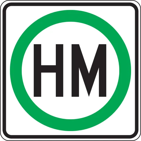 • The Hazardous Material Route (R14-2) sign may be used to identify routes that have been designated by proper authority for vehicles transporting hazardous material