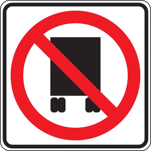 • The National Network Prohibition (R14-5) sign may be used to identify routes, portions of routes, and ramps where trucks are prohibited. The R14-5 sign may also be used to mark the ends of routes