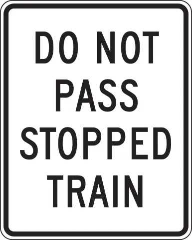 • A Do Not Pass Light Rail Transit (R15-5a) sign is used to indicate that motor vehicles are not allowed to pass LRT vehicles that are loading or unloading passengers where there is no separation