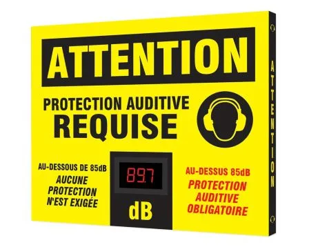 Decibel levels are measured and displayed alerting workers of the need for ear protection.