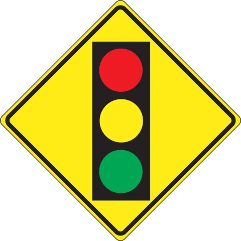 - Signal Ahead (W3-3) signs shall be installed on an approach to a primary traffic control device that is not visible for a sufficient distance to permit the road user to respond to the device