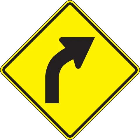 - If a horizontal alignment sign is required, recommended, or allowed, the sign installed in advance of the curve shall be a Curve (W1-2) sign unless a different sign is recommended by the MUTCD