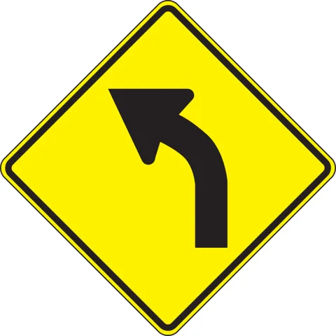 Inform road-users and motorists of an upcoming left curve in the roadway.