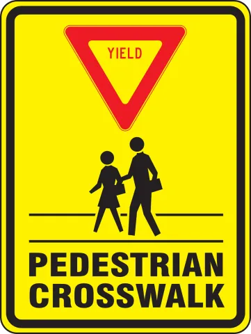 Instruct road-users to yield to pedestrian traffic in the crosswalk.