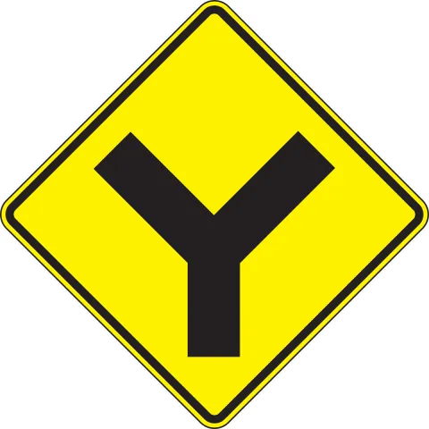 • Y-Symbol (W2-5) sign may be used in advance of an intersection to indicate the presence of an intersection and the possibility of turning or entering traffic