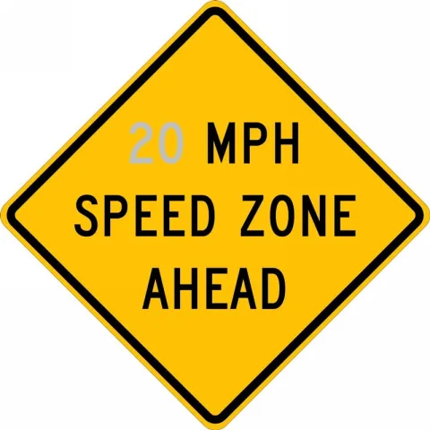 - The (W3-5a) sign can be used to restrict vehicle speed in designated zone areas of the roadway