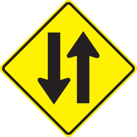 - A Two-Way Traffic (W6-3) sign should be used to warn road users of a transition from a multi-lane divided section of roadway to a two-lane, two-way section of roadway
