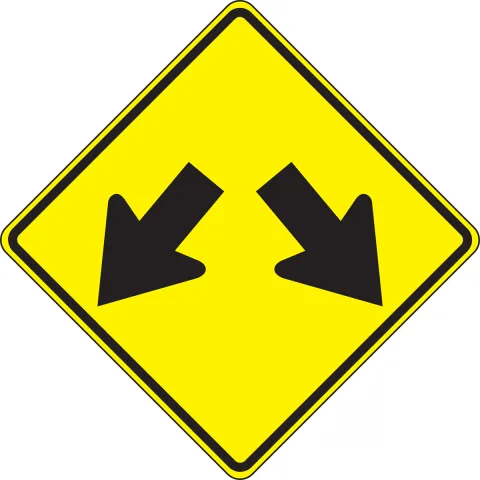 - The Double Arrow (W12-1) sign may be used to advise road users that traffic is permitted to pass on either side of an island, obstruction, or object in the roadway.
