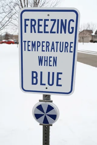 - IceAlert™ Indicator Sign changes from reflective silver to reflective blue as the temperature drops to freezing level