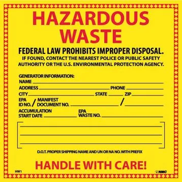 6" x 6" Hazardous Waste Hazmat Label Yellow