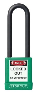 Accuform KDL702GN 8" Shackle 1-3/4" x 3" Stopout Plastic Body Aluminum Padlock with Dielectric Poly-Wrap Steel Shackle Green Keyed Differently