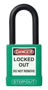Accuform KDL712GN 8" Shackle 1-3/4" x 1-1/2" Stopout Plastic Body Aluminum Padlock with Dielectric Poly-Wrap Steel Shackle Green Keyed Alike