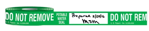 - Visible green tape with identifying message discourages tampering with the water cooler. When removed, the tape leaves no sticky residue that could attract airborne contaminants. Rolls can be assigned to designated persons only to avoid unauthorized use.