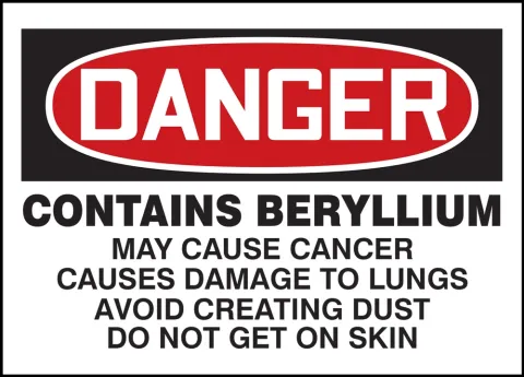 • Label notifies employees the dangers of beryllium and to avoid skin contact and dust