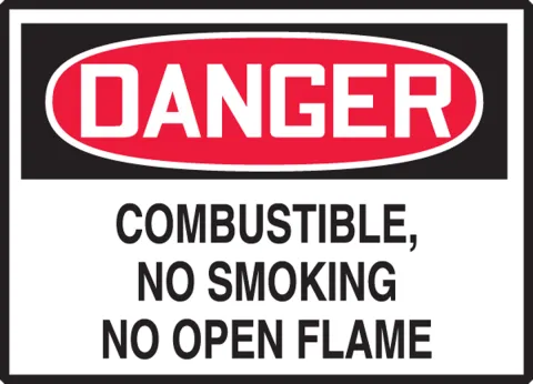 Advises workers that area contains combustible material. Smoking, open flames prohibited.