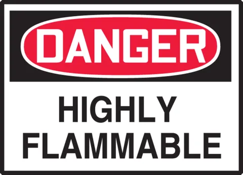 Warns employees and workers of areas containing materials that are highly flammable.