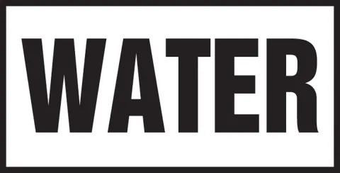 Clearly mark water locations with a plain black and white safety label.