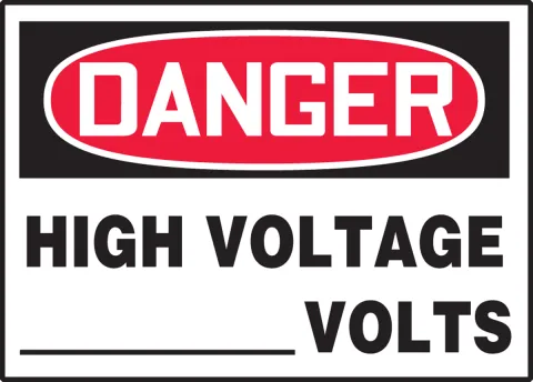 Customize this label to include the exact voltage in a hazardous area.