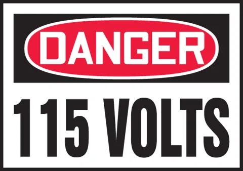 Prevent hazardous electrical injuries with a 115 Volts Danger label.