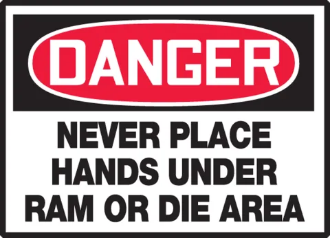 Help improve workplace safety with this label warning of danger around ram or die areas.