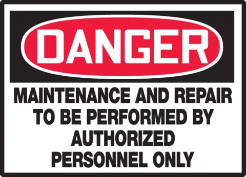 Maintenance, Repair and Service signs communicate the current state of equipment and specific hazards.