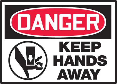 OSHA-compliant label with illustration will help reduce hand injuries.