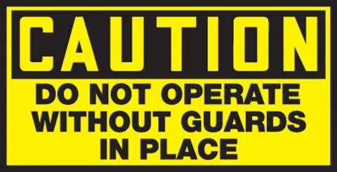 Caution all personnel of a machine that needs to have the proper guards before operation.