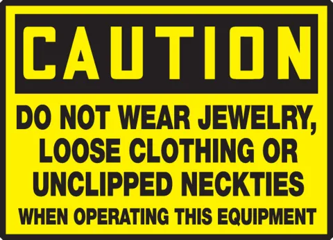 Prevent injuries by warning of clothing/accessories that could get caught in machinery.