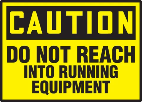 Prevent injuries by warning employees to not stick their hands into running equipment.