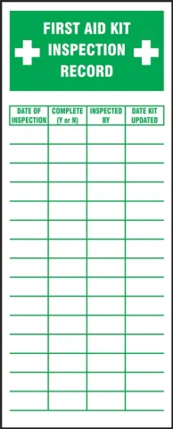 Place inside or near First Aid station to provide documentation of inspections Available in two adhesive materials, including Adhesive Dura-Vinyl™ which adheres easily to most indoor and outdoor surfaces Carries a 5 year guarantee on durabilityProduct Description