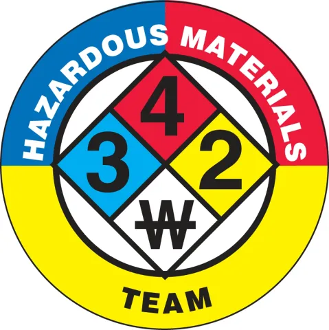 Accuform LHTL130 Hard Hat Stickers: Hazardous Materials Team