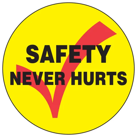 - Sticker helps inform all personnel that safety never hurts.