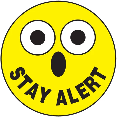 - Sticker helps inform all personnel that you stay alert with a smile...