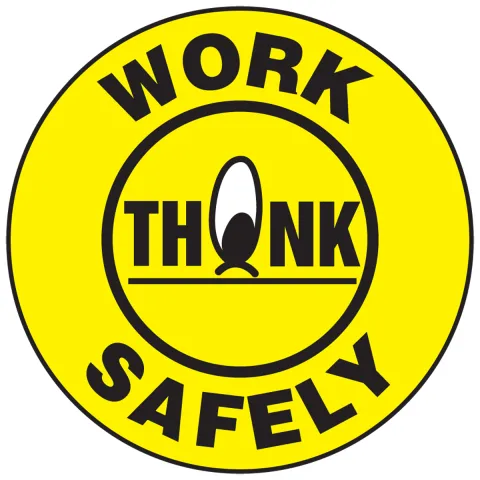 - Think, Work Safely sticker measures 2¼ inches