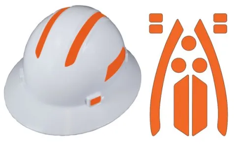 Kick-up visibility with reflective sticker kits designed for popular hard hat models.