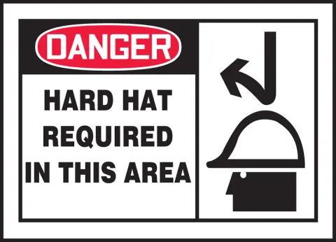 Alert workers and guests of the need to don a hard hat in the work area with this label.