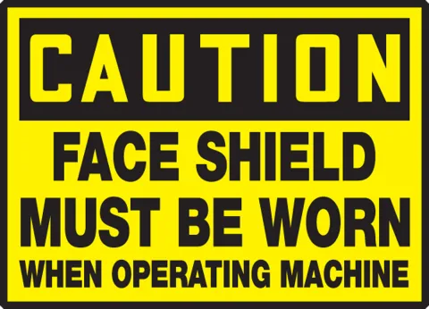 Warn employees that a face shield must be worn when operating machinery.